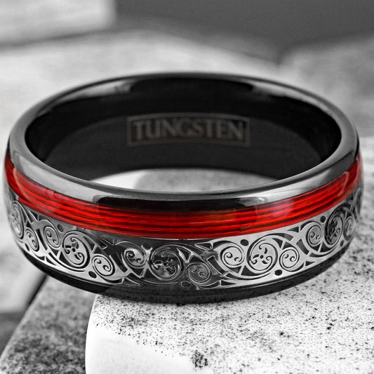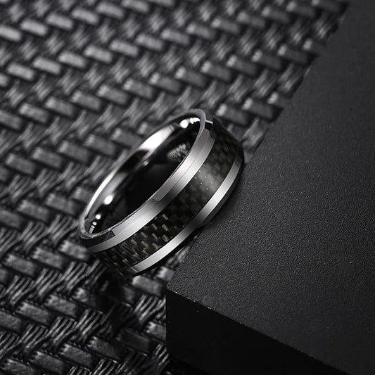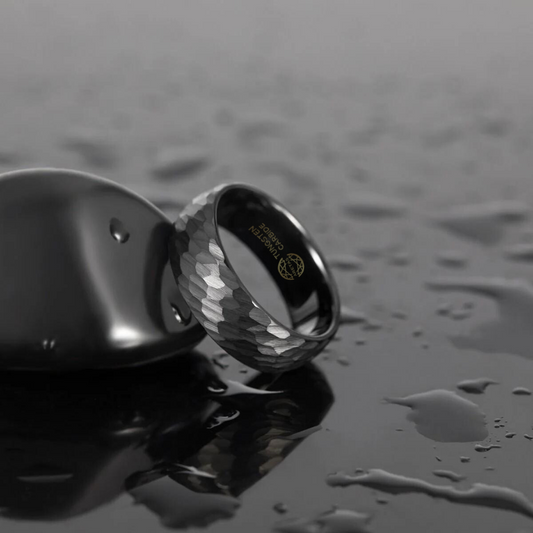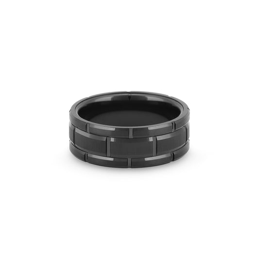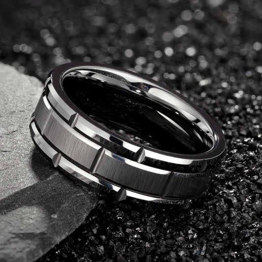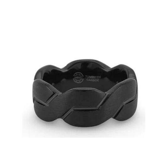 Elevate your look with this men's black textured ring by Aretas. Crafted with high-quality tungsten carbide, this anti-scratch ring withstands daily use for long-lasting durability. The high-polish finish creates a strong, handsome look, while the contoured design allows for comfortable wear.