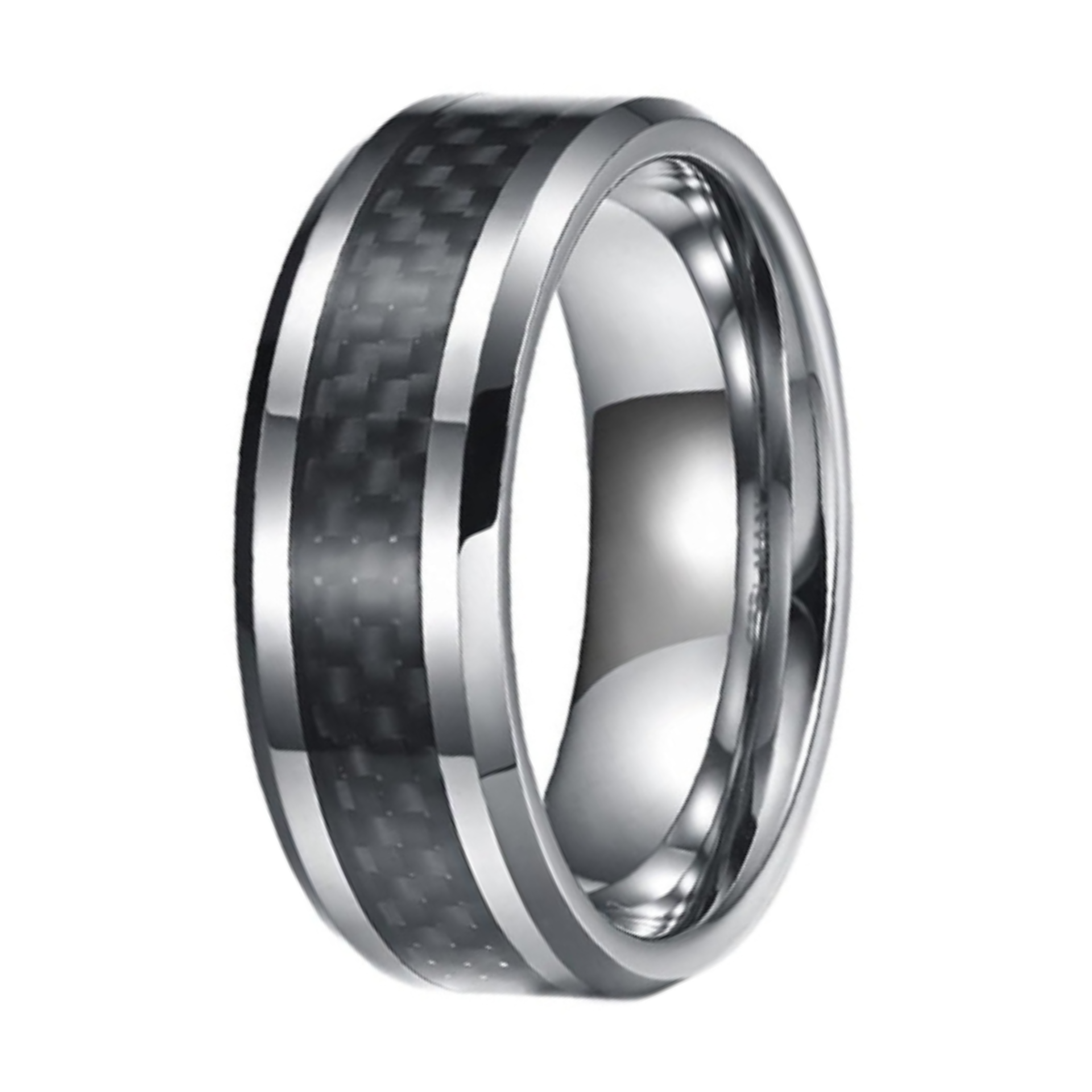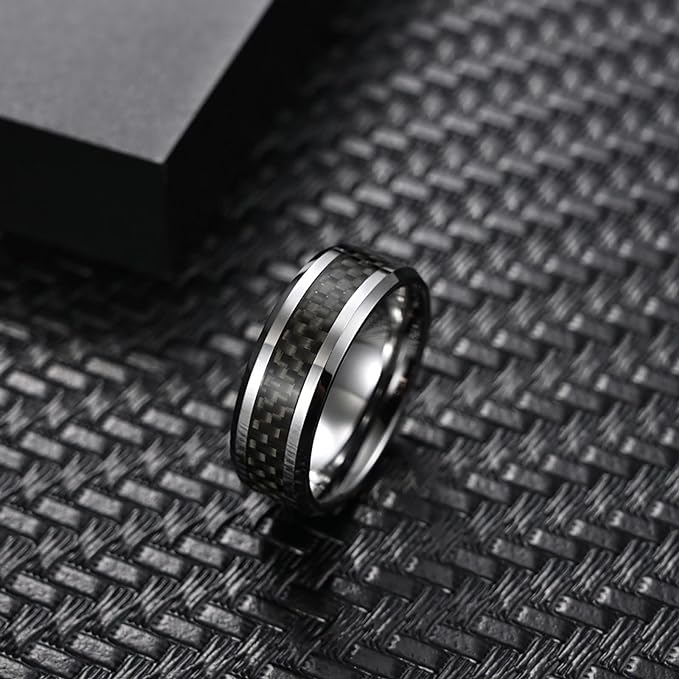 Black & Silver color Men Tungsten Carbide / Carbon fiber Ring 8mm