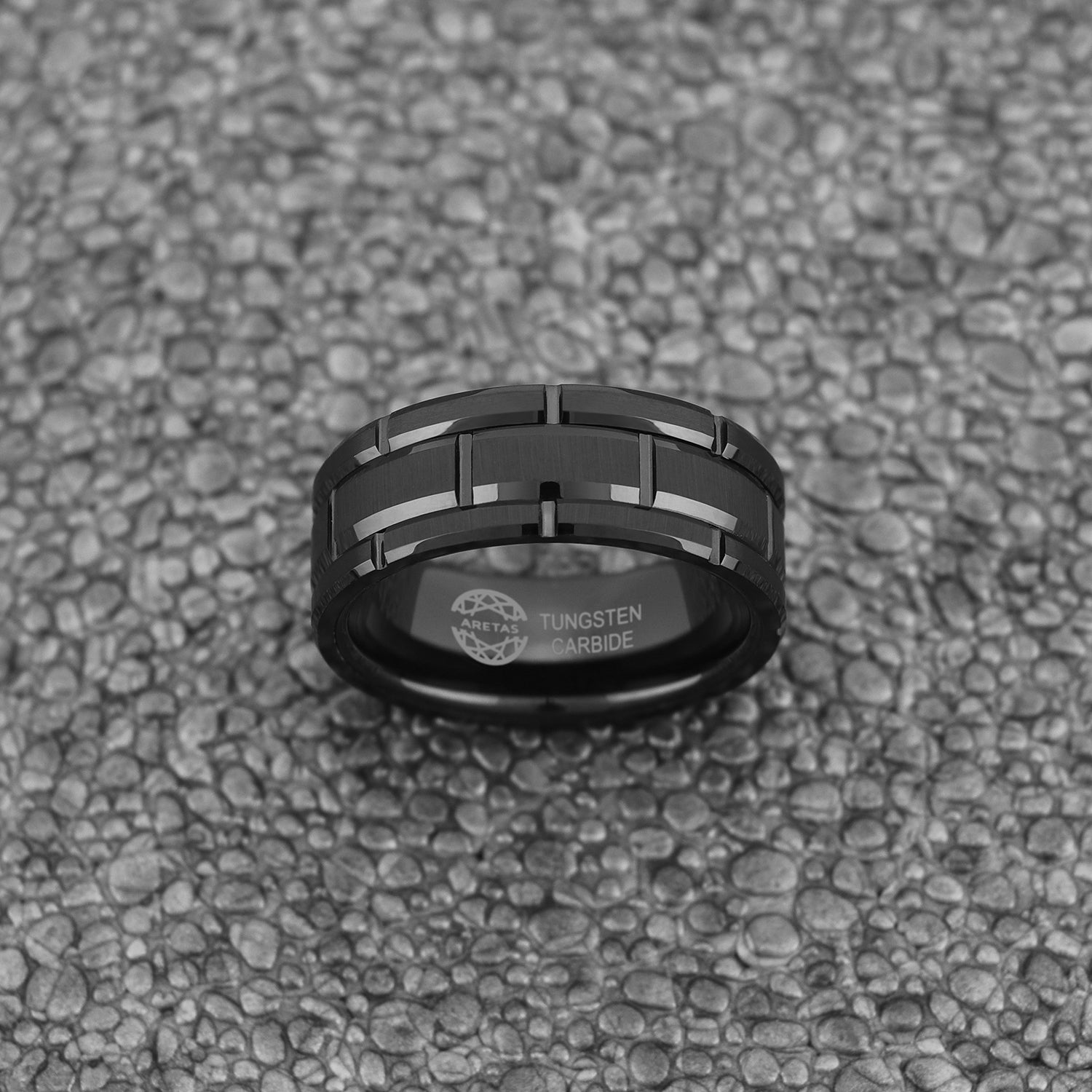 Our newest tungsten arrival, our bricked tungsten band is the perfect casual band with a unique twist!