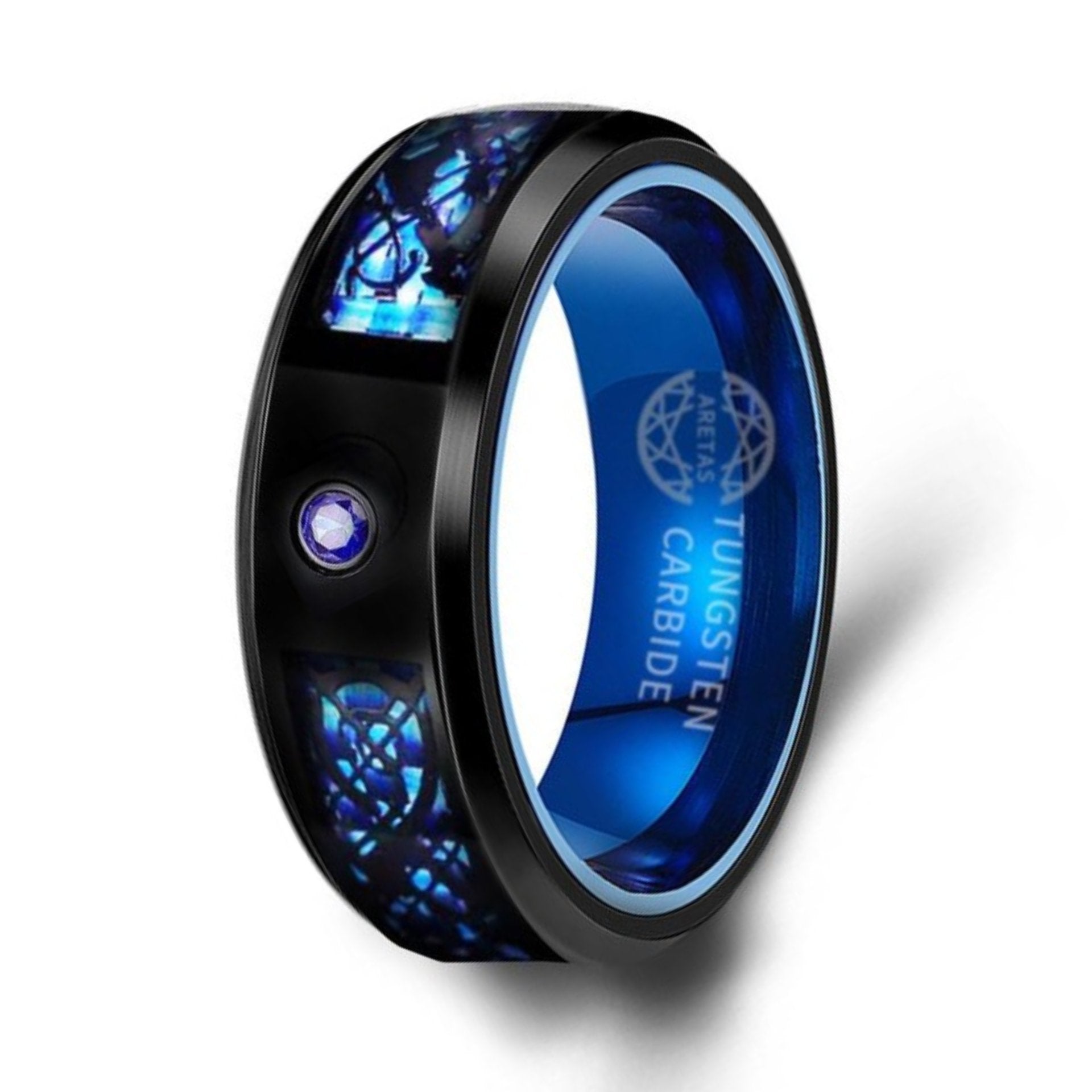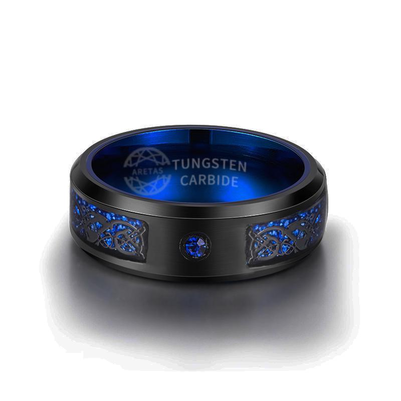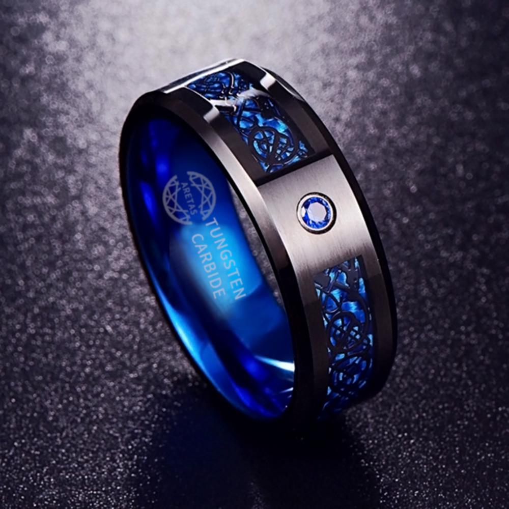 Blue & Black color Men Tungsten Carbide / Carbon fiber Ring 8mm