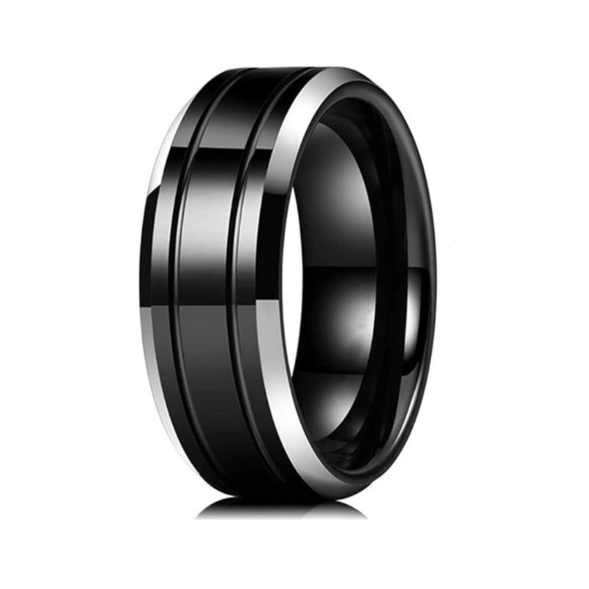 Crafted from premium tungsten steel, DualStrike embodies strength and style with its bold black finish—contrasting matte and polished surfaces divided by twin precision-cut lines. Designed for men who value durability and distinction, this 8mm wide, 2mm thick ring weighs approximately 14g and delivers unmatched toughness—four times harder than titanium and highly resistant to scratches. The comfort-fit interior ensures a smooth, contoured feel for all-day wear, making it the perfect fusion of resilience and refined design.