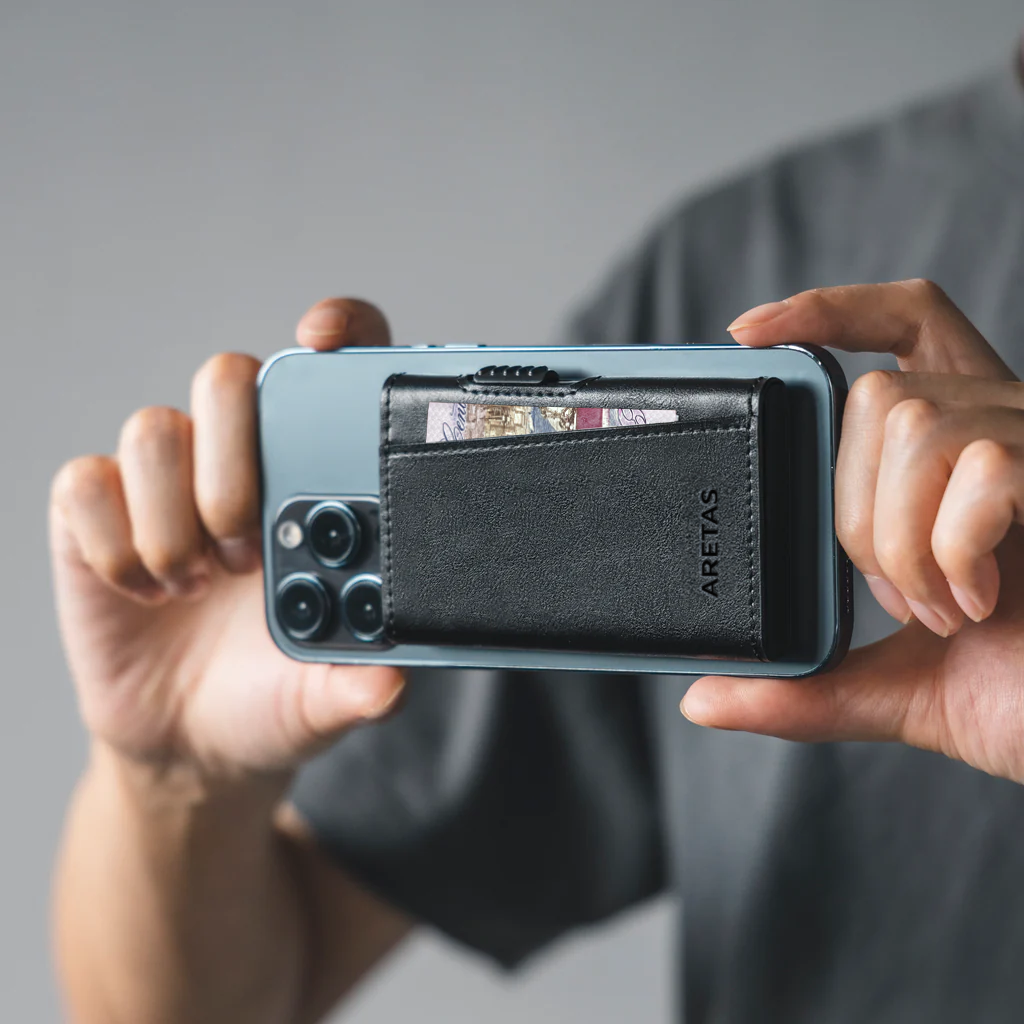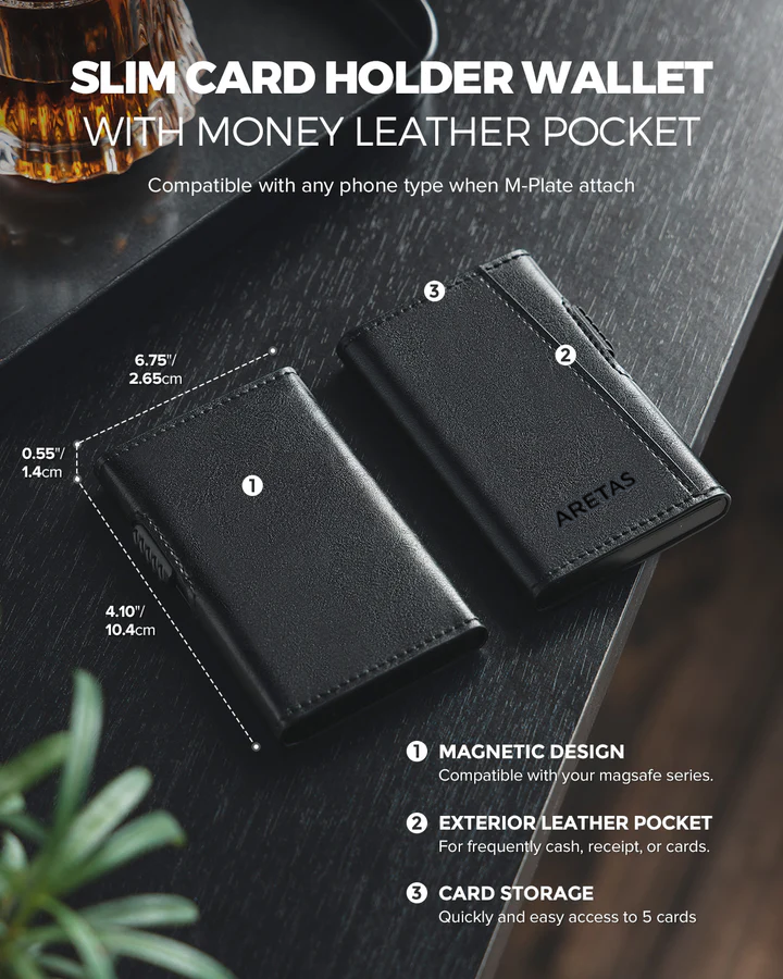 The card holder magnetic wallet features strong built-in magnets that allow it to effortlessly snap into place on the back of your iPhone.