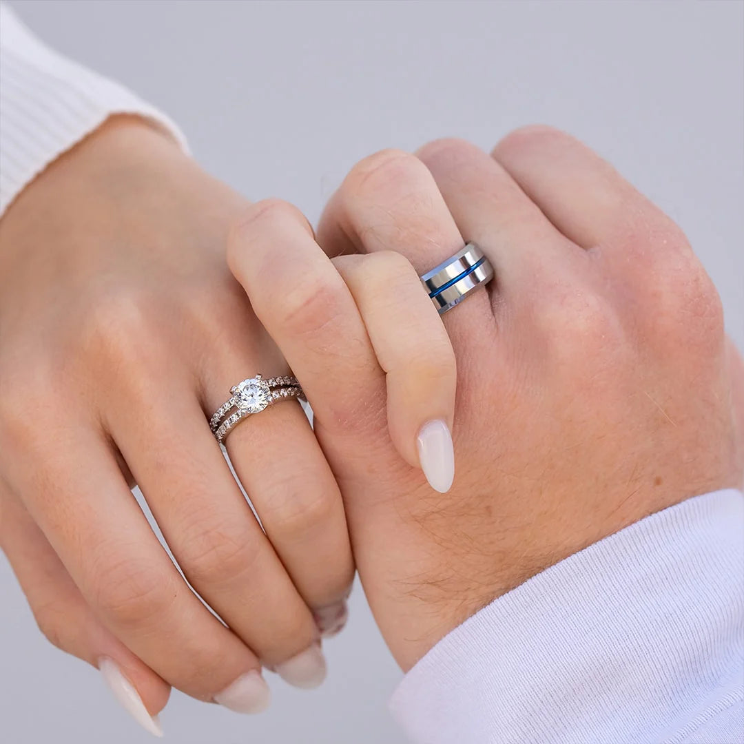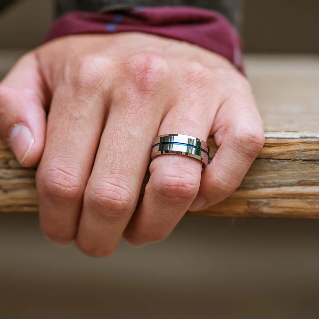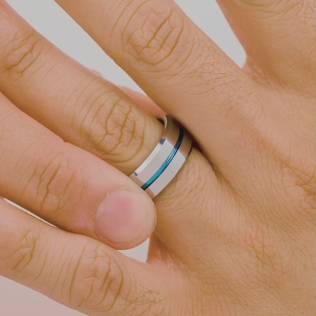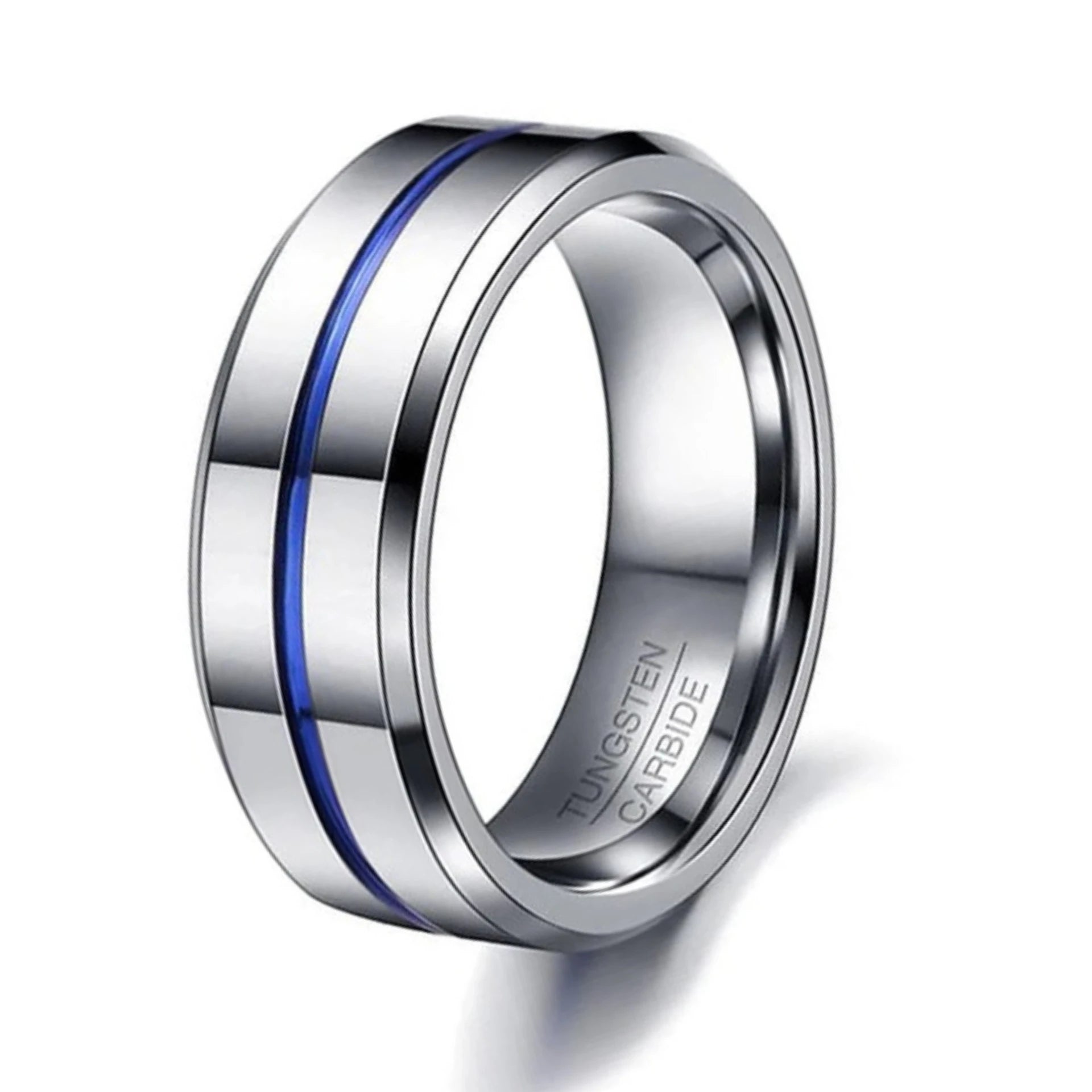 8mm | Silver & Blue color | Men Tungsten Carbide Ring